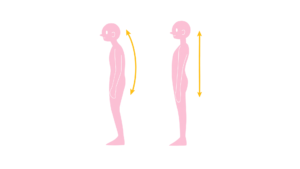 筋肉だけで支えきれなくなると、自然と前かがみの猫背姿勢になってしまいます。